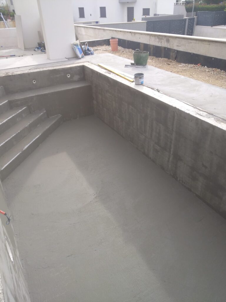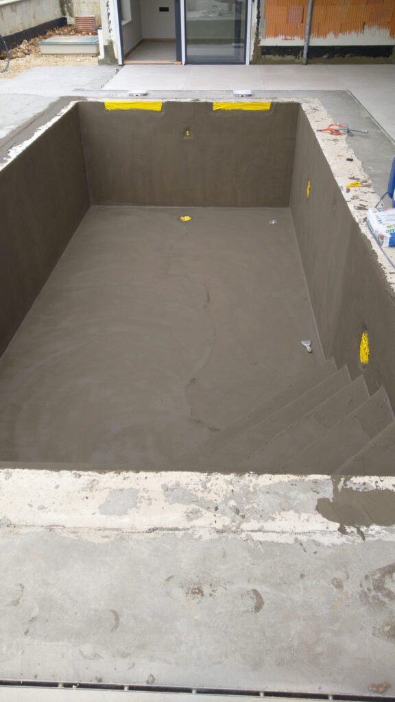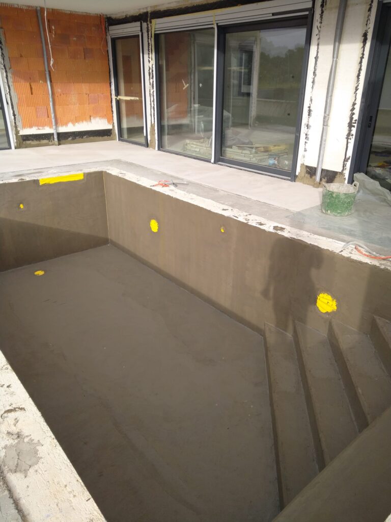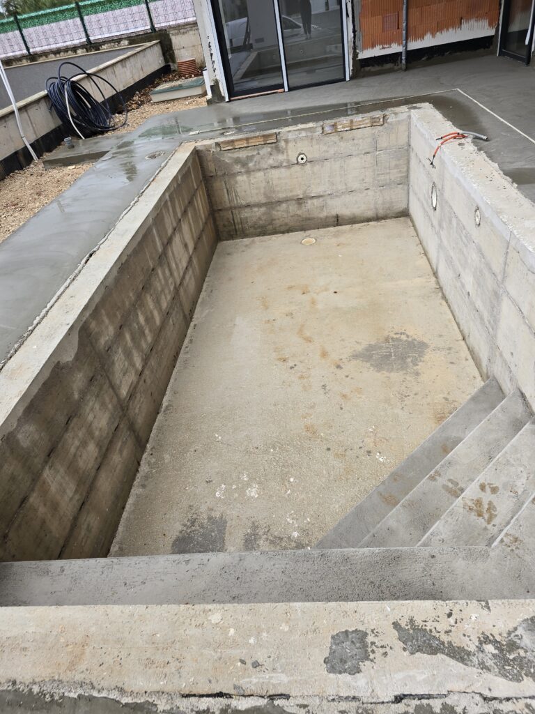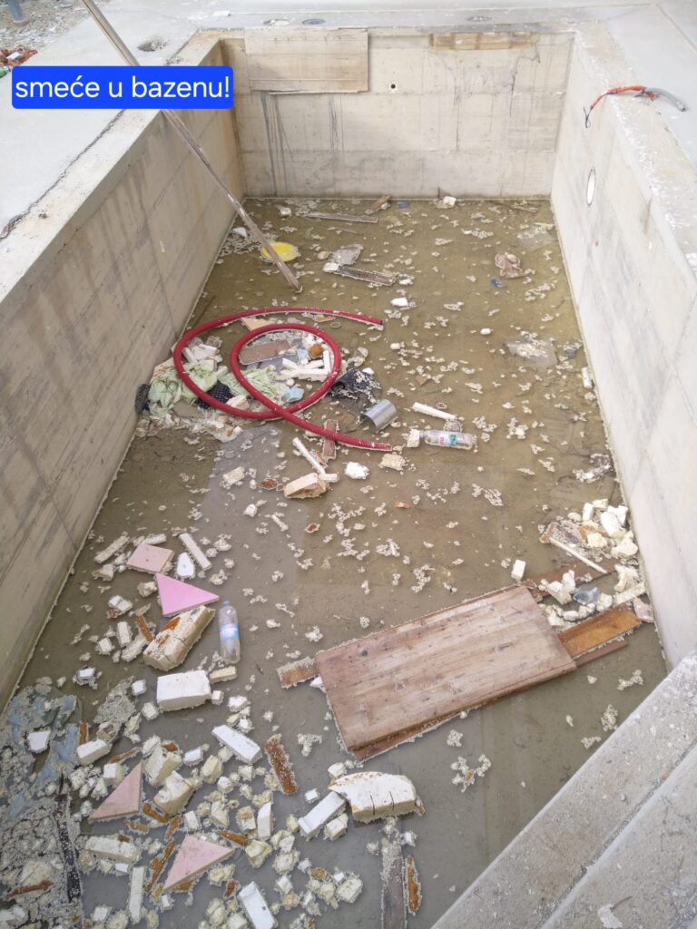 Slijedi otprasivanje i pranje bazena, impregniranje, stavljanje antikorozivne zastite na zilete. brtvljenje epoksidnom masom oko prodora vode i preko zileta.