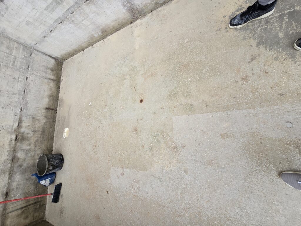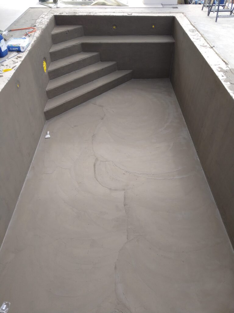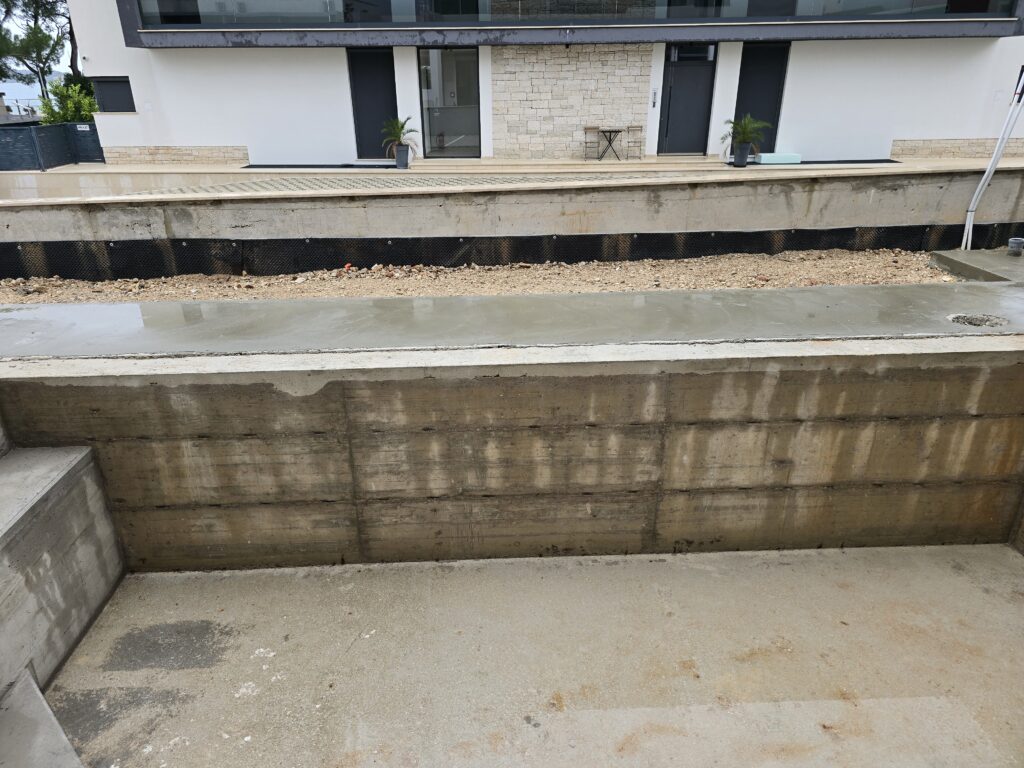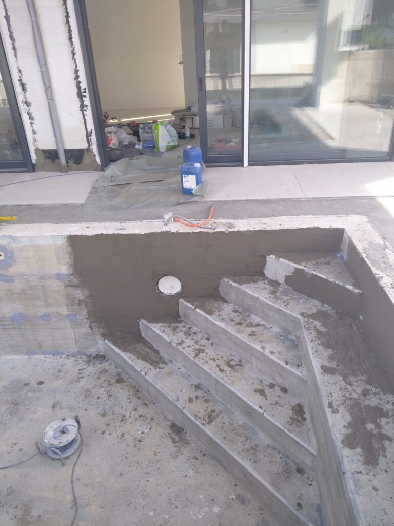 Slijedi otprasivanje i pranje bazena, impregniranje, stavljanje antikorozivne zastite na zilete. brtvljenje epoksidnom masom oko prodora vode i preko zileta.