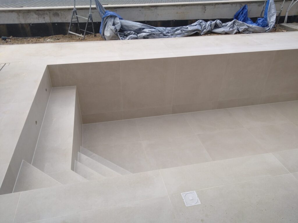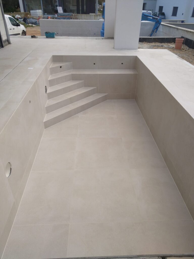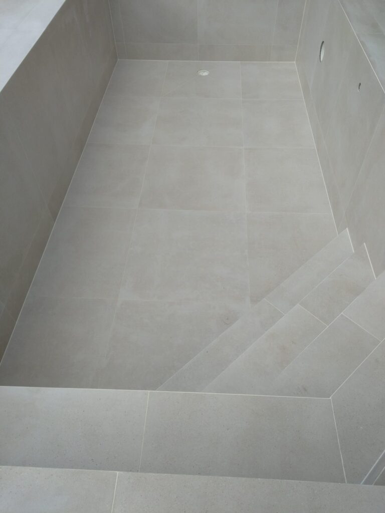 Kada je sve postavljeno i ocisceno pristupamo fugiranju i silikoniranju bazena.